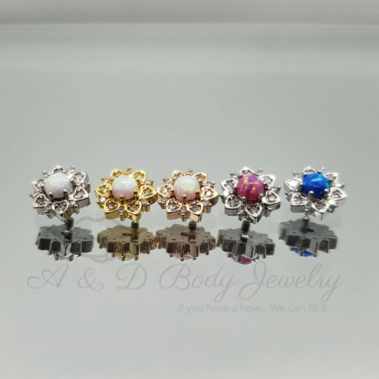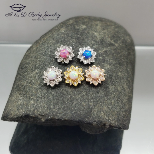 Cubic Zirconia Flower Opal Dermal Anchor Top - 14 Gauge