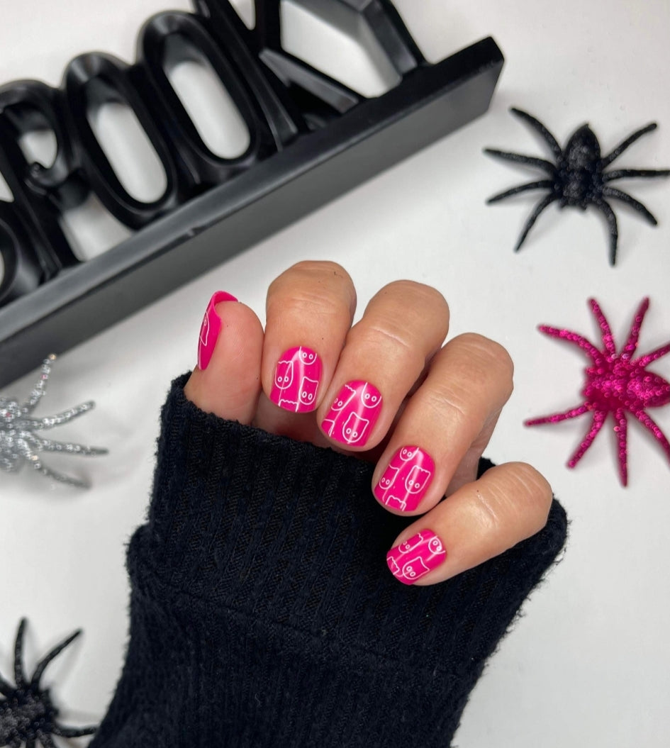 Bridget's Rendezvous with Boo ~ Pink Ghost Design Short Square ~ SHINY