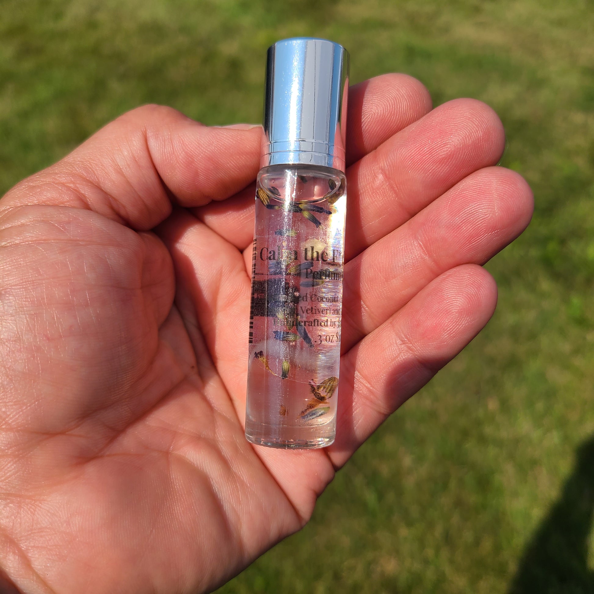 Our handmade Perfume Oil is made with Fractionated Coconut Oil, Lavender (Vetiver) Essential Oil, and Lavender Buds
