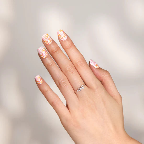 Colorful Cheetah, Christiana ~ Orange, Pink and White Short Square ~ SHINY with LEOPARD