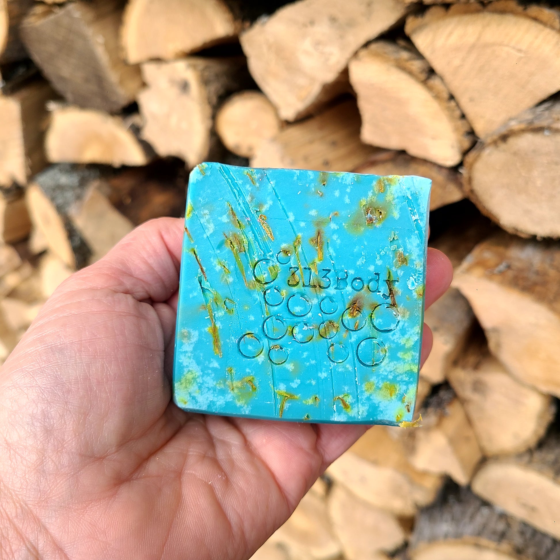 Frosted Juniper Scented Handmade Soap with Kokum Butter and Calendula Petals