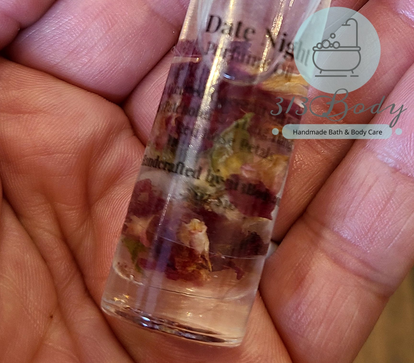 Our handmade Perfume Oil is made with Fractionated Coconut Oil, Essential Oils (Patchouli & Ylang Ylang), and Red Rose Petals