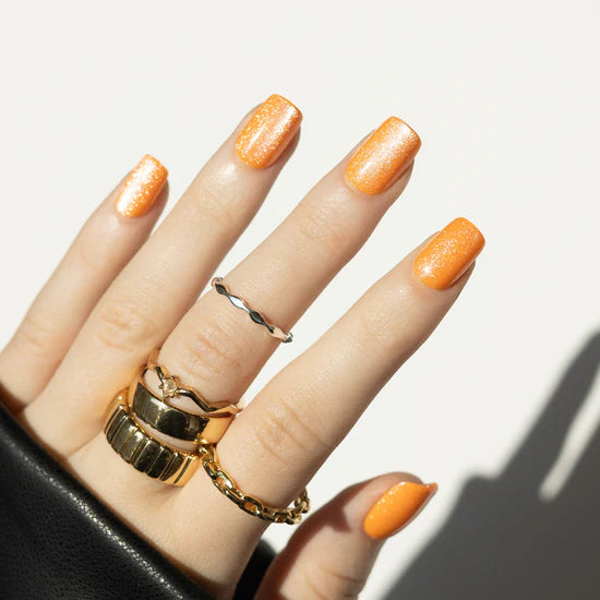 Eccentric Evangeline ~ Orange Short Squoval ~ GLITTER & SHINY