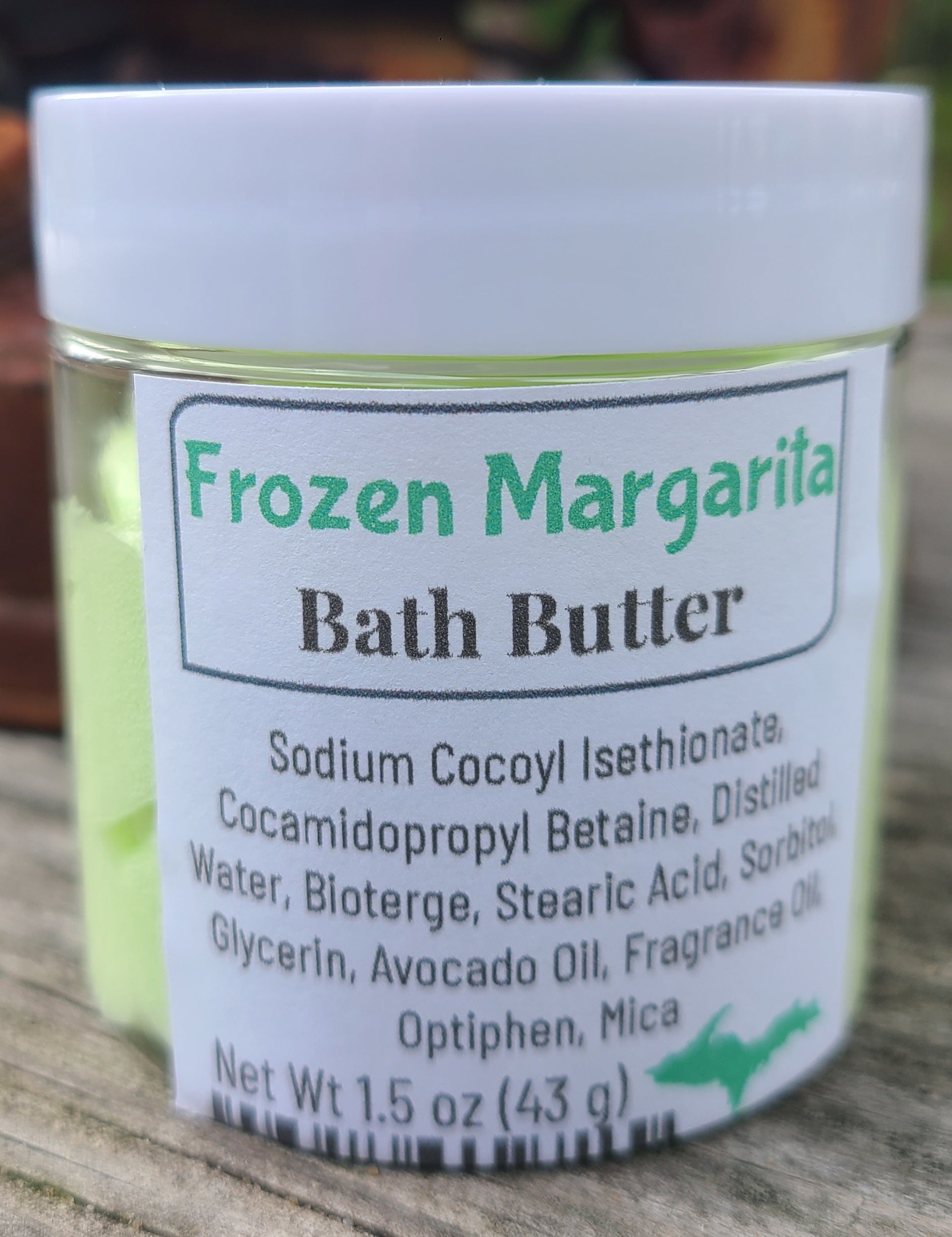 Our handmade Bath Butter is made with Sodium Cocoyl Isethionate, Cocamidopropyl Betaine, Distilled Water, Bioterge, Stearic Acid, Sorbitol, Glycerin, Avocado Oil, Fragrance Oil, Optiphen, Mica