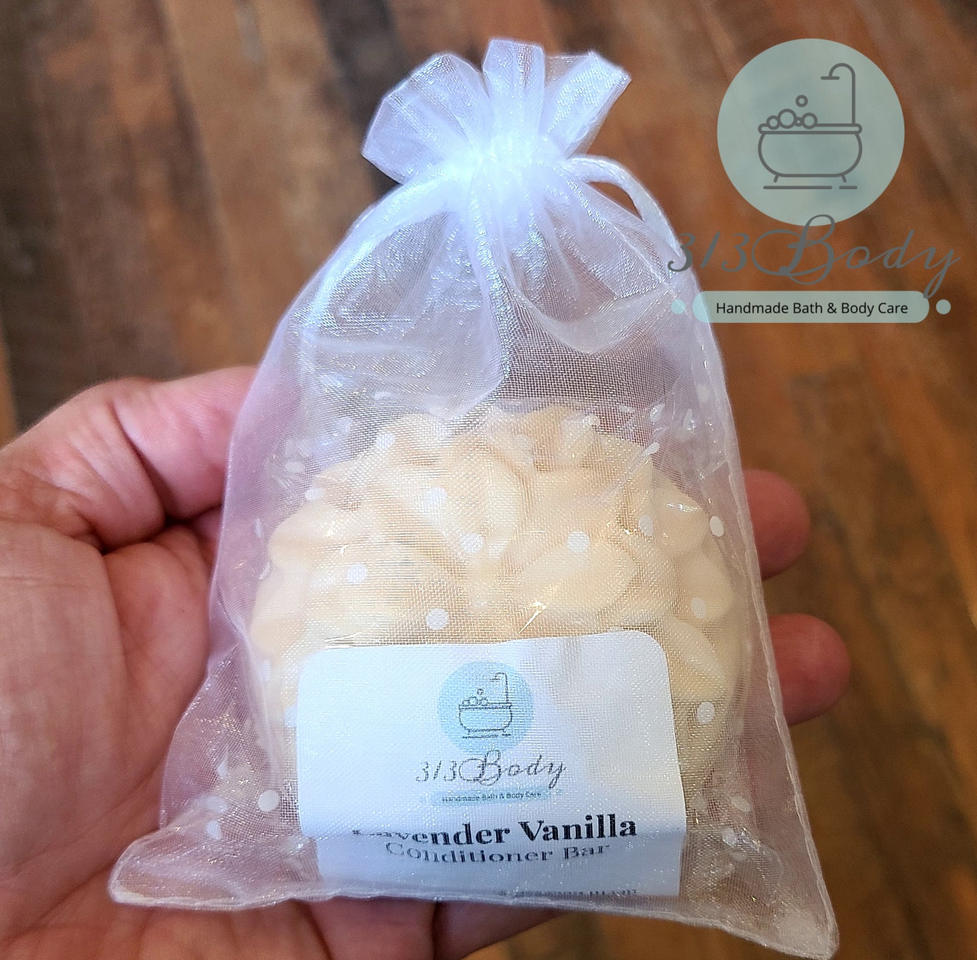Our handmade Conditioner Bar contains BTMS-50, Cetyl Alcohol, Jojoba Oil, Tucuma Butter, Chamomile Butter, Liquid Silk, DL-Panthenol, Cyclomethicone, Fragrance Oil, Optiphen, and Vitamin E