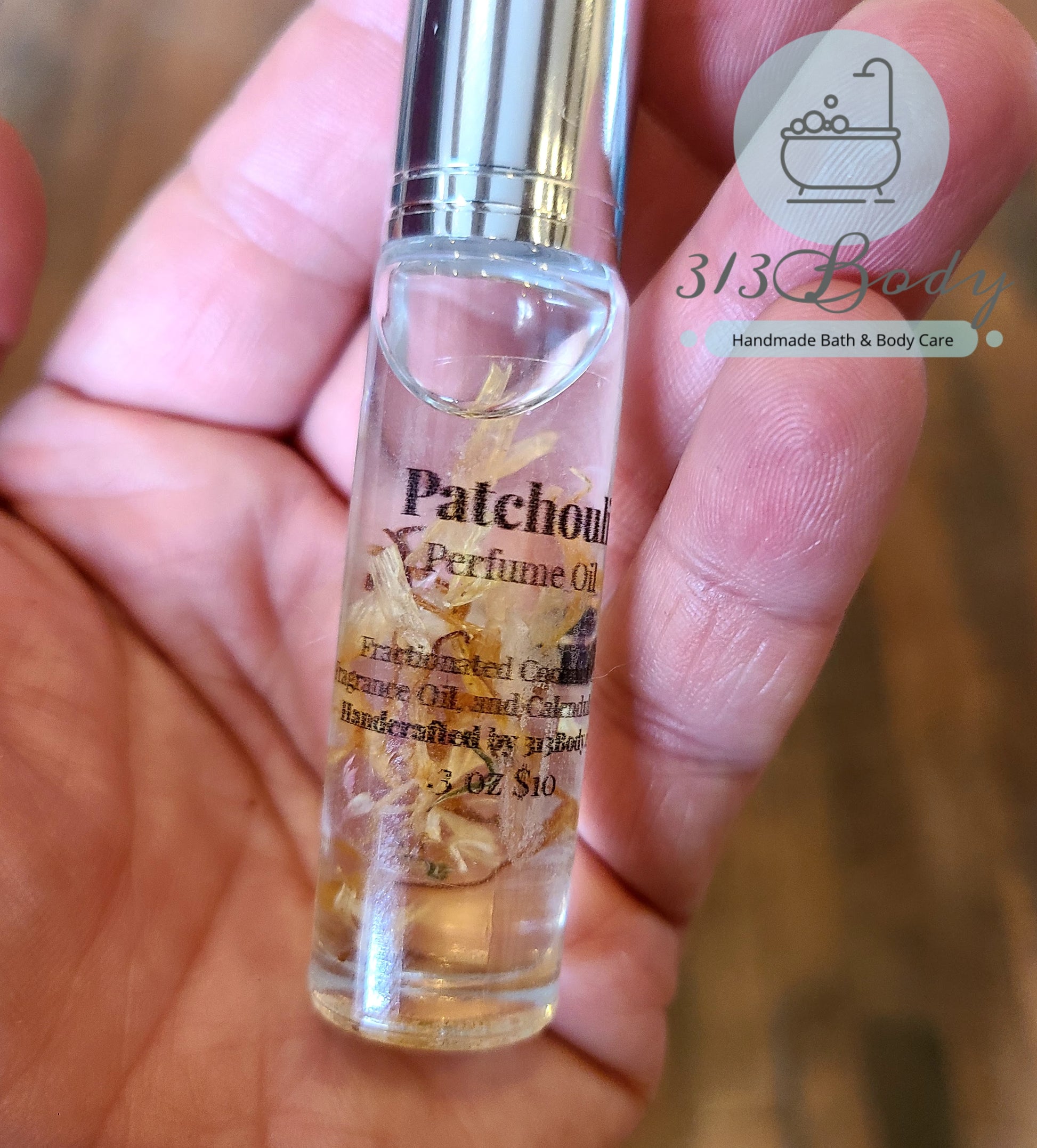 Our handmade Perfume Oil is made with Fractionated Coconut Oil, Essential Oil, and Calendula Petals
