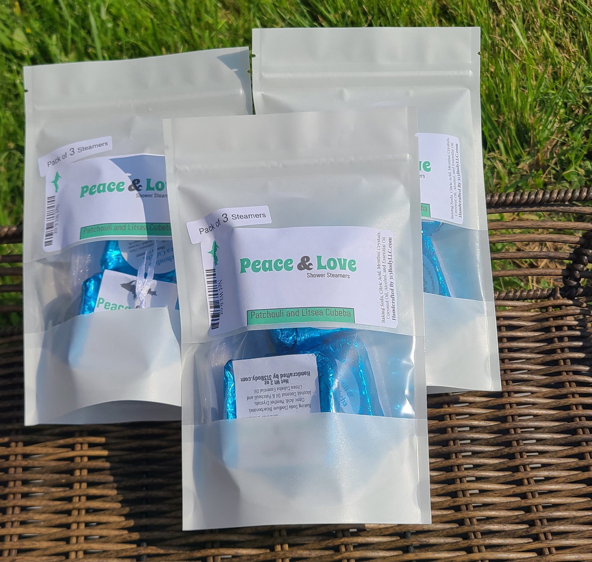 PEACE and LOVE ~ Patchouli and Litsea Cubeba Shower Steamer - 3 Pack
