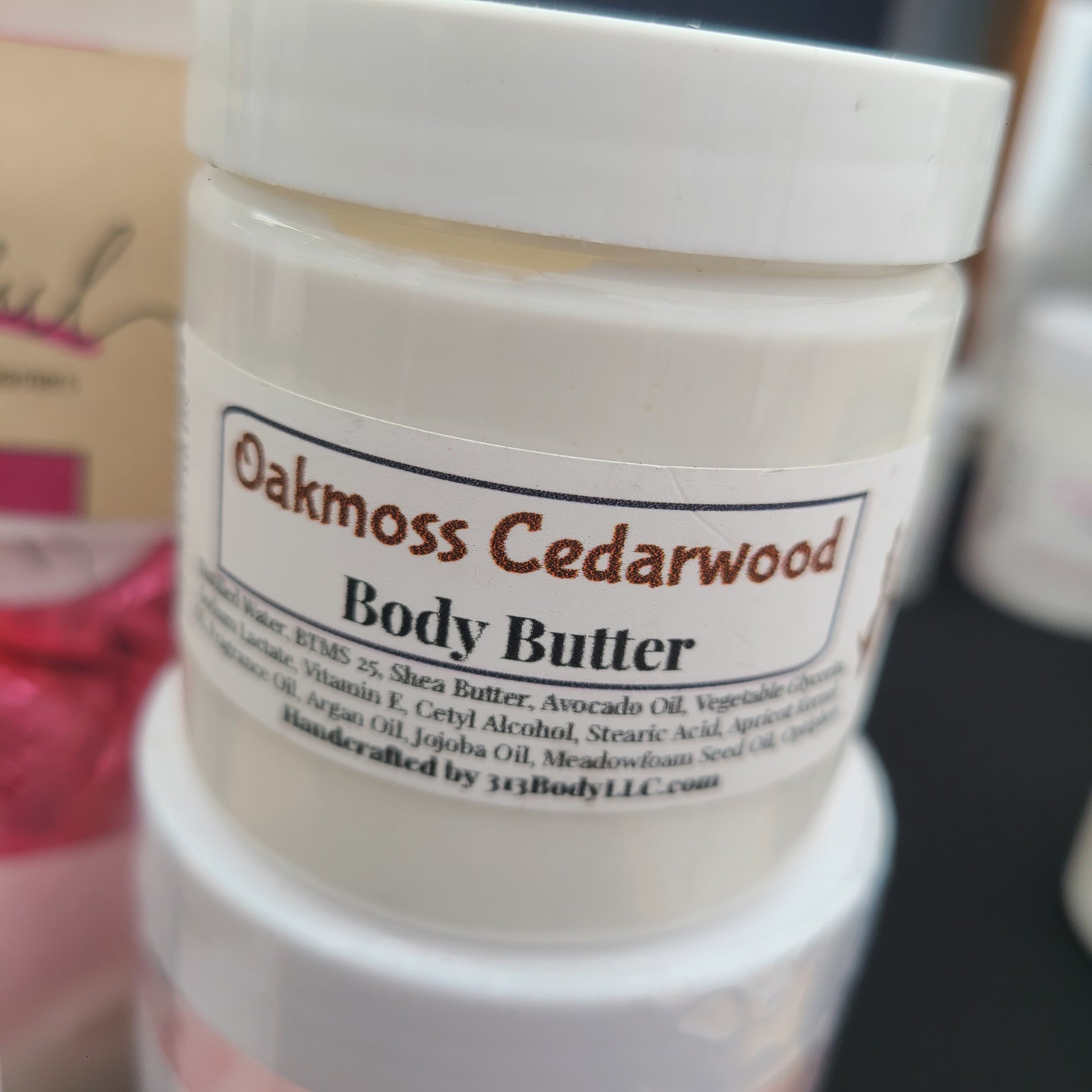 Body Butter is made with Distilled Water, BTMS 25, Shea Butter, Avocado Oil, Vegetable Glycerin, Sodium Lactate, Vitamin E, Cetyl Alcohol, Stearic Acid, Apricot Kernel Oil, Fragrance Oil, Argan Oil, Jojoba Oil, Meadowfoam Seed Oil, Optiphen