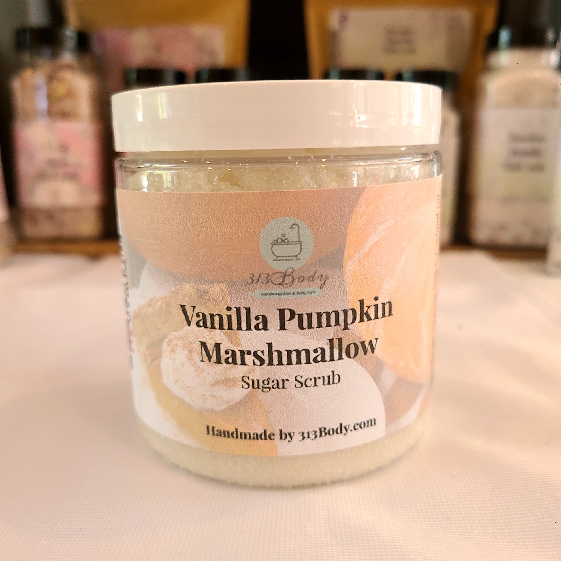 Vanilla Pumpkin Marshmallow Coarse Sugar Scrub with Shea Butter and Avocado Oil