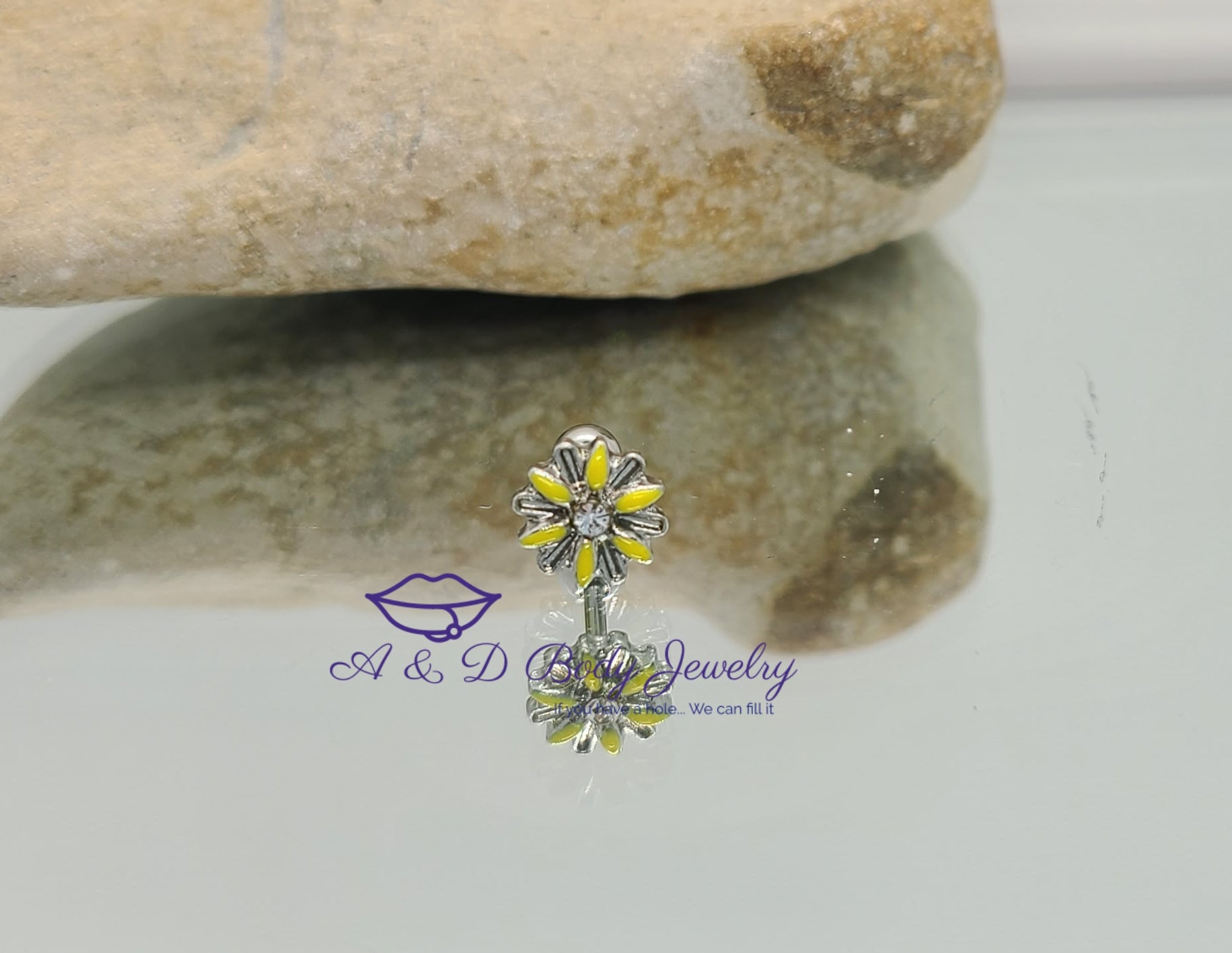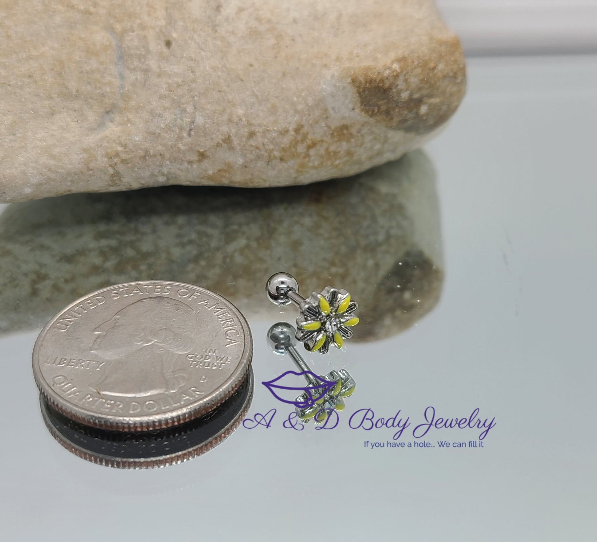 Yellow Daisy Cartilage Earring - Cartilage Barbell